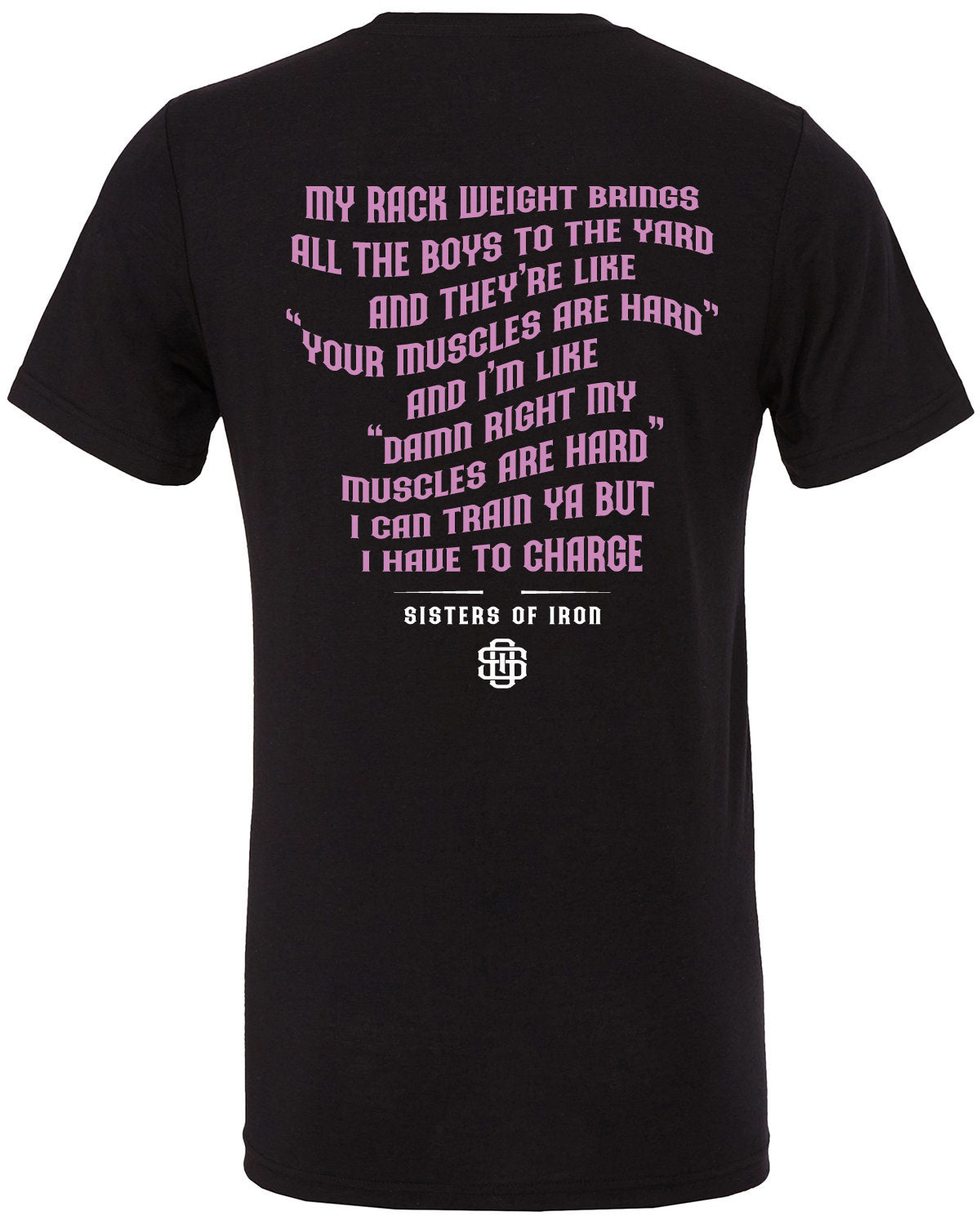My rack weight brings all the boys to the yard, and they're like "Your muscles are hard", and I'm like "Damn right my muscles are hard, I could train ya but I'd have to charge"- Strength Snack
