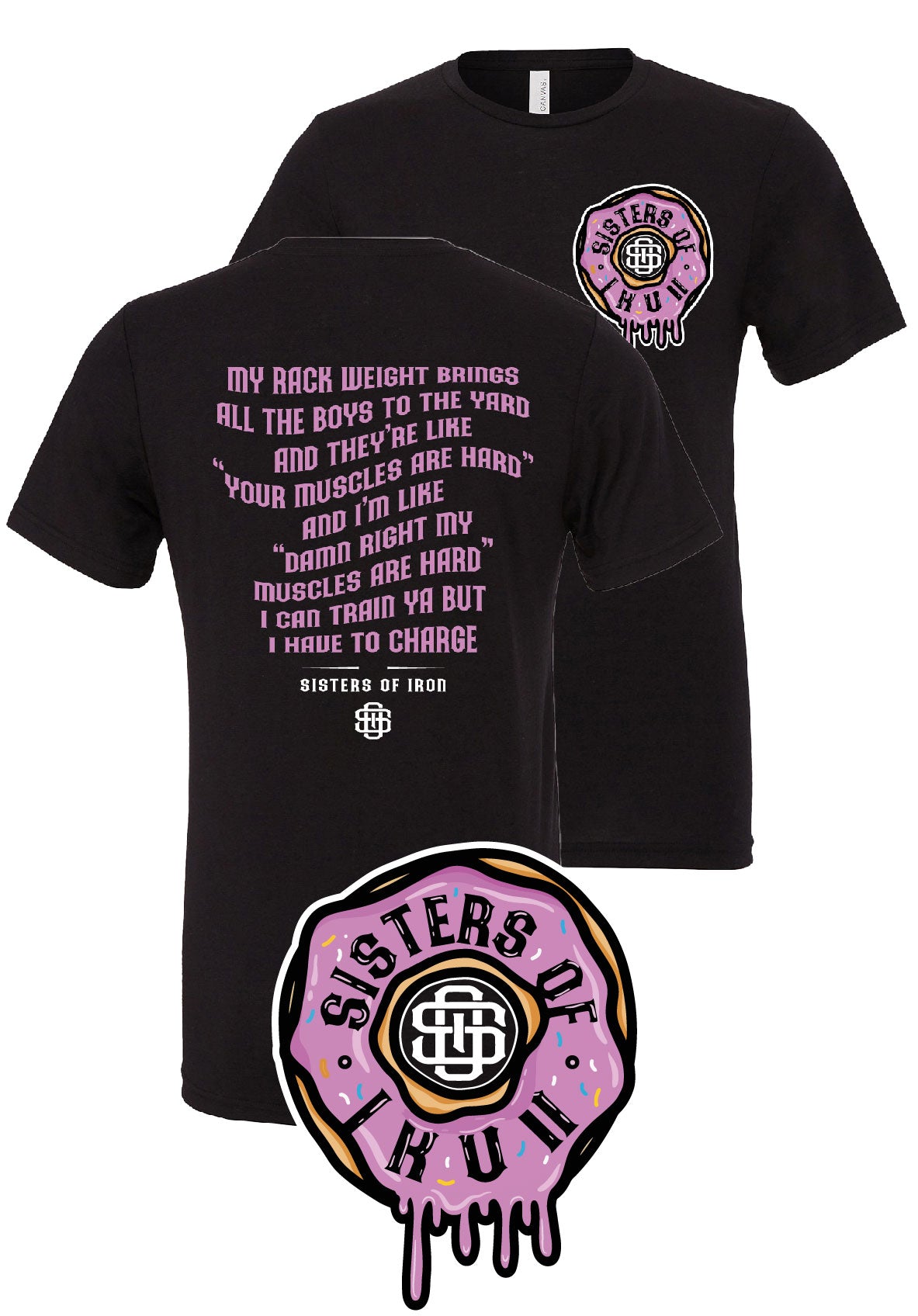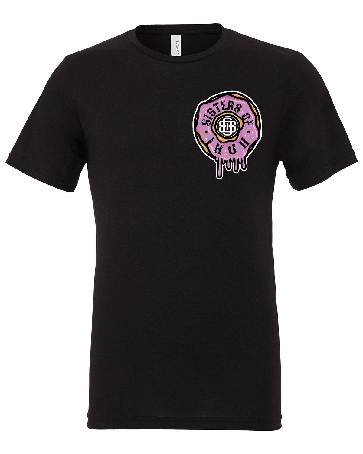 - Note- the color for front print is different than pictured. We decided to remove brown color from doughnut- dark like our souls ;) See last image for actual print