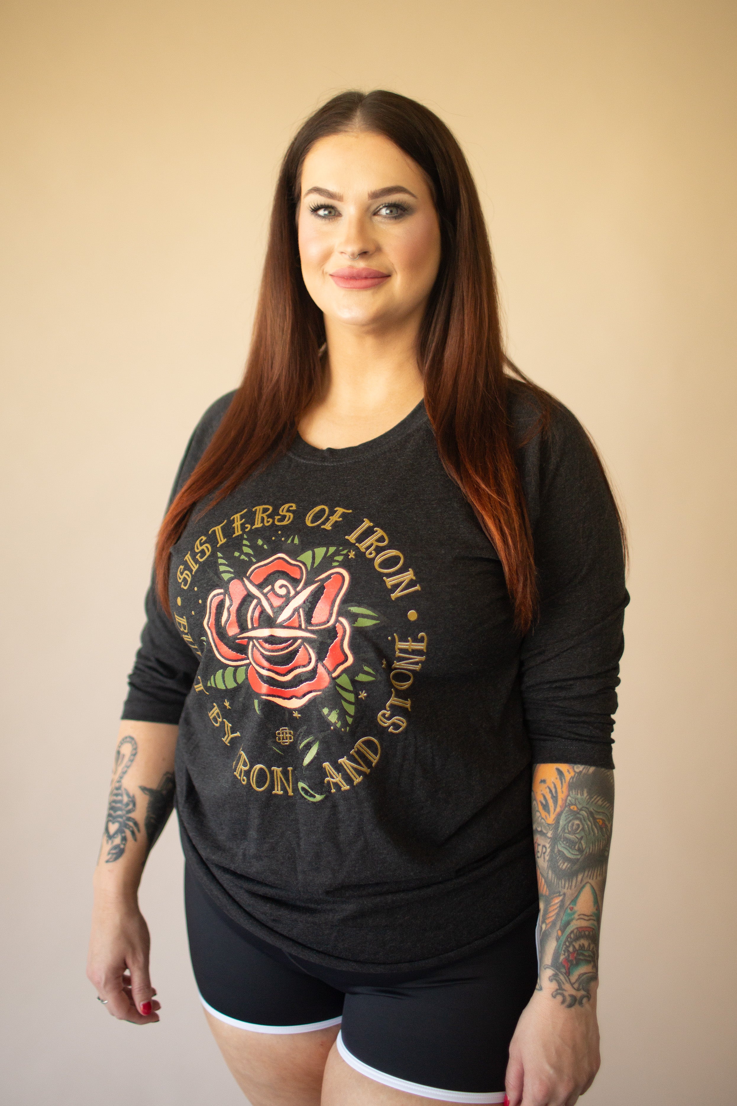 Sisters of Iron crafted Warm Up baseball tee from a blend of iron-infused fabric and super-soft material.