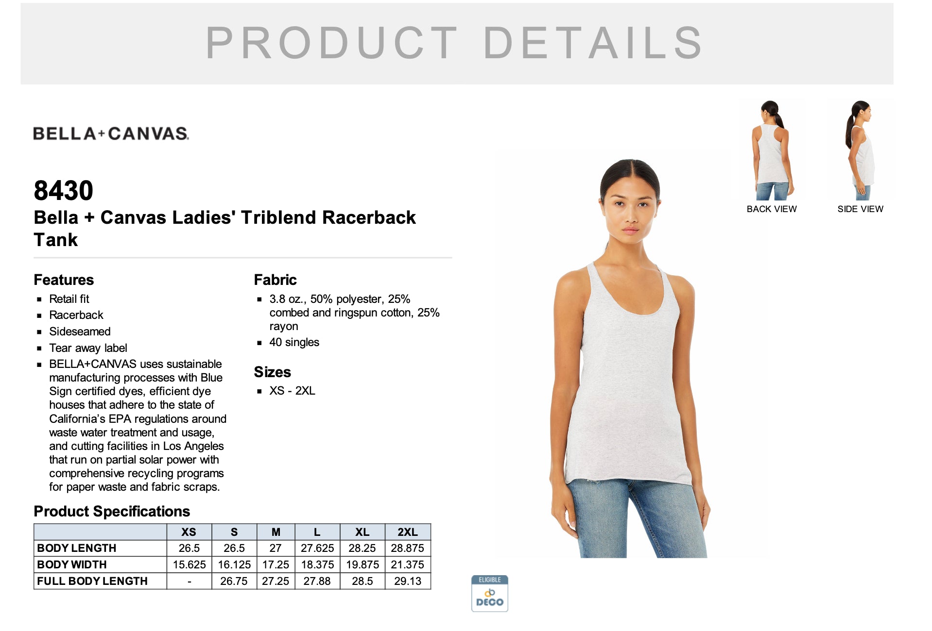 • sizes xs-2xl in a racer back